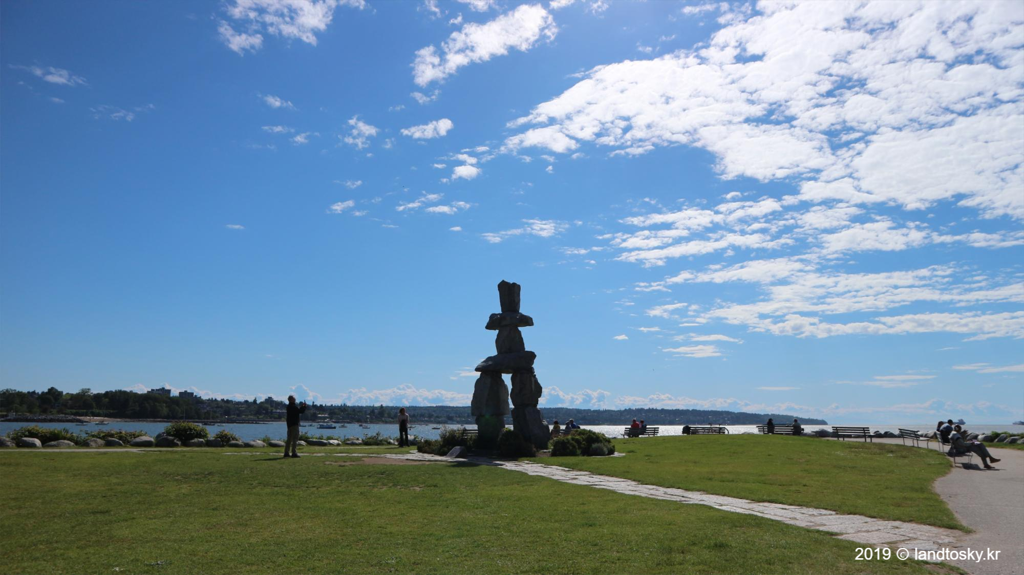 Inukshuk이 있는 곳에 도착했습니다. 여기에 indigenous history 관련 표석이 설치되어 있습니다.