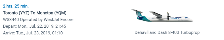 다음은 Moncton까지 가는 플라이트 일정이다.