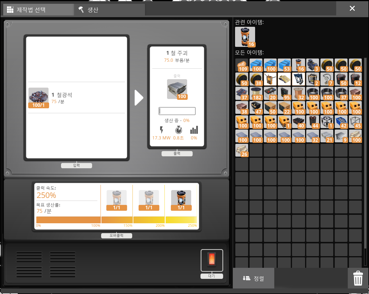 2. 제련기, 조립기, 정제소, 발전기의 UI가 변경됨 (사진의 순서는 적힌 대로 나열함)