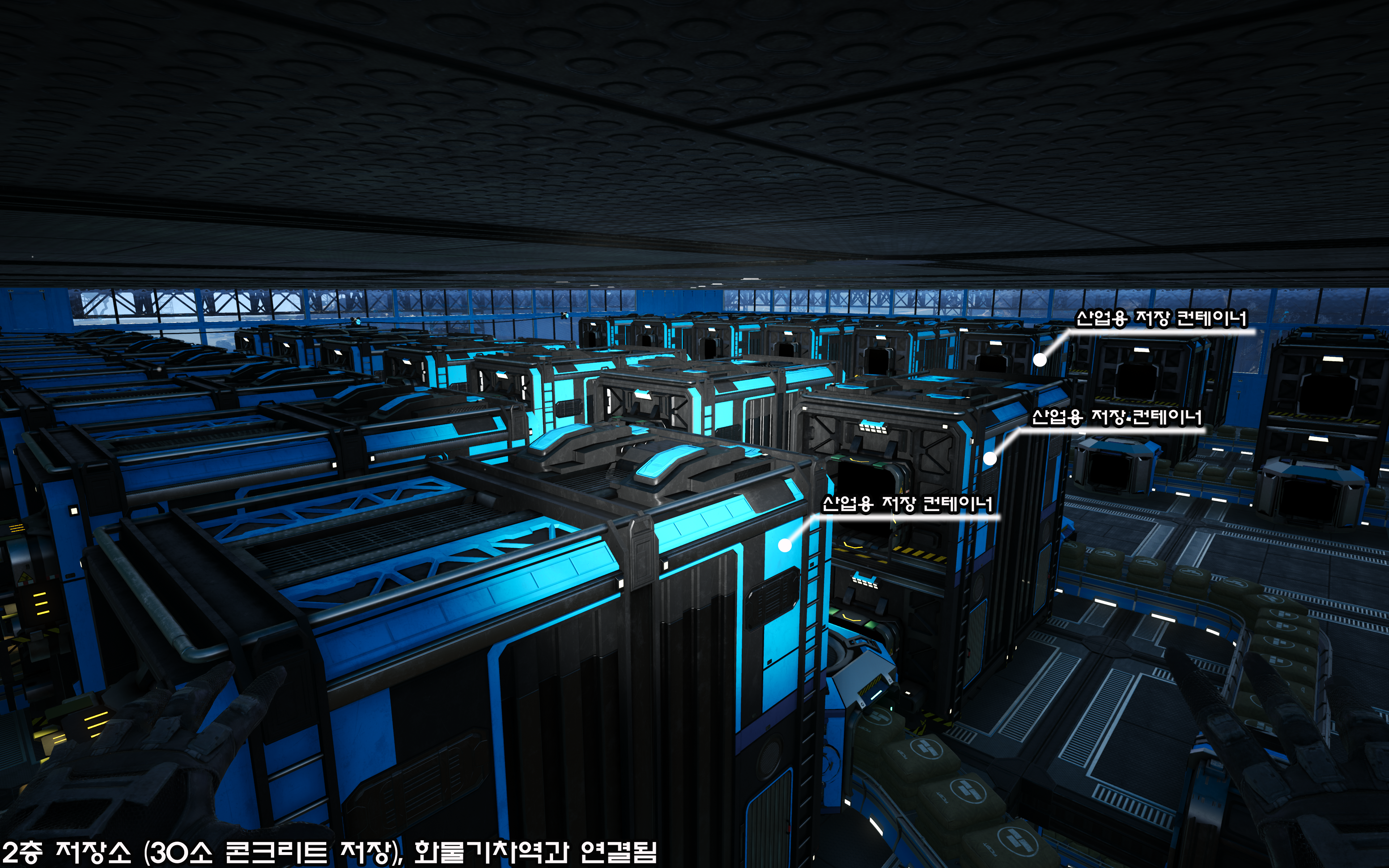 1층에서 생산하는 콘크리트를 저장하는 저장소이며, 원자력발전소로 운반하기 위한 화물 기차역과 연결되어 있습니다.