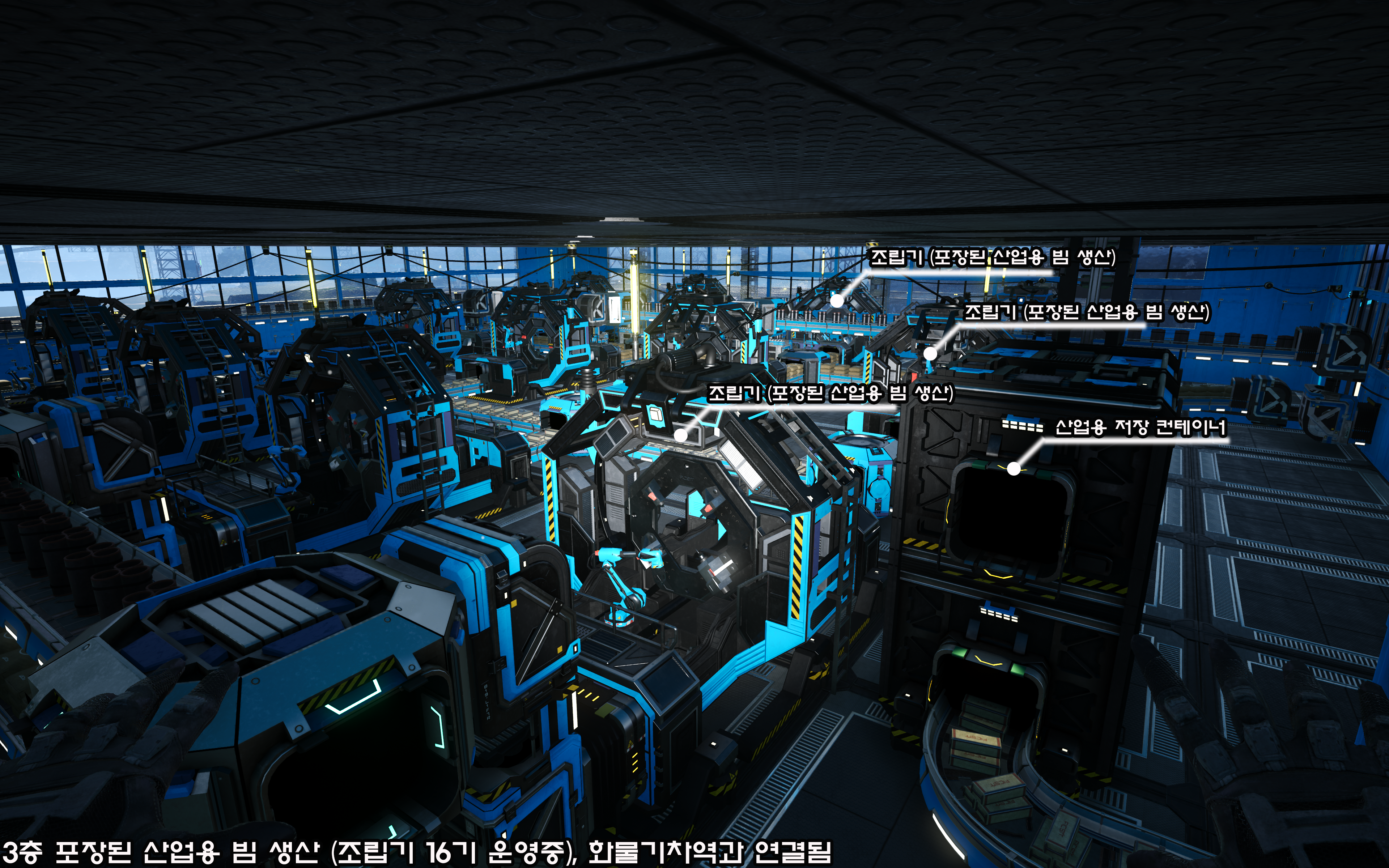 고급 티어용 재료인 고중량 모듈식 골조를 생산하는 생산실입니다.