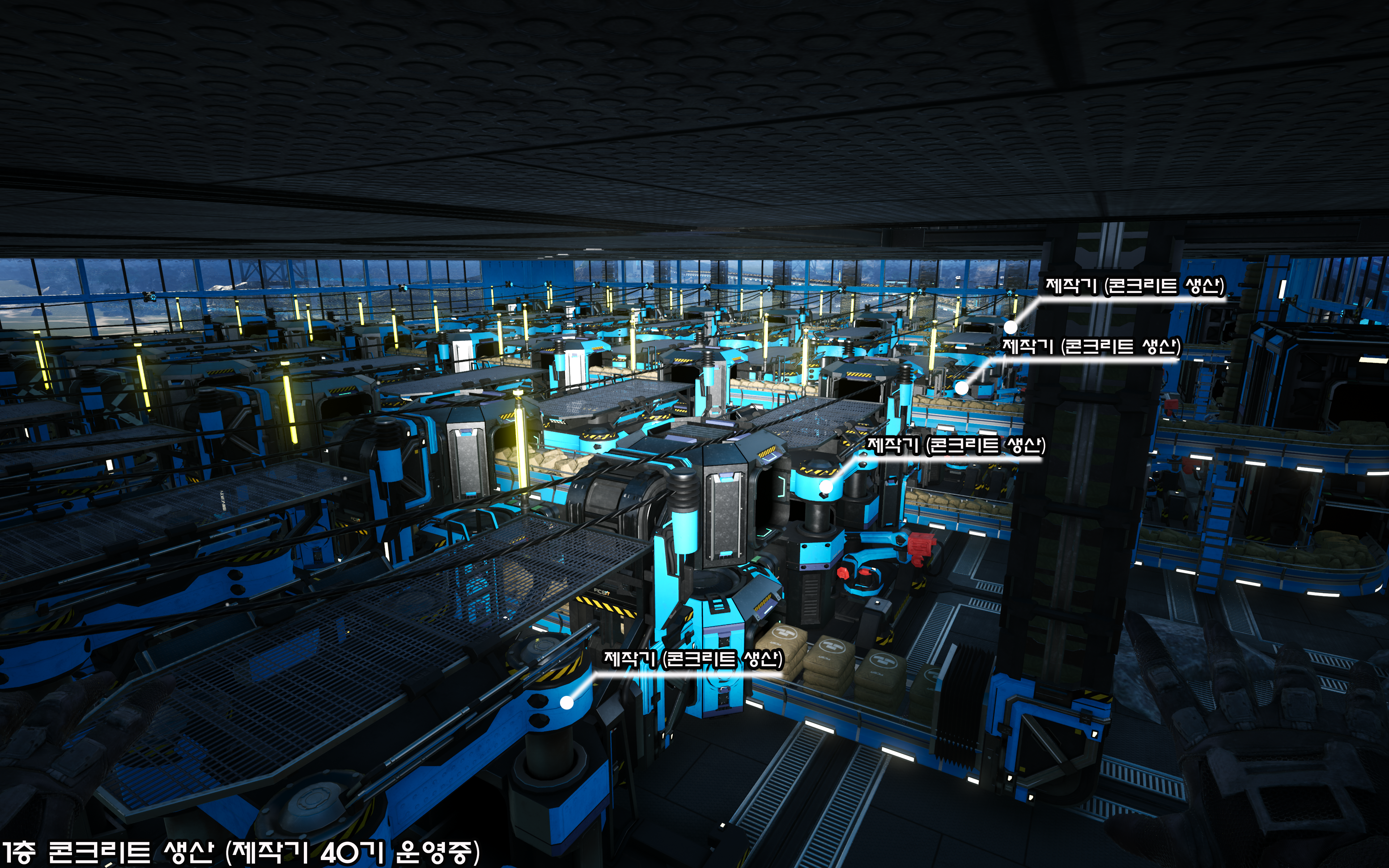 새티스팩토리 레시피에 사용되는 재료 중에서 Top 3에 들어갈 정도로 많이 사용하는 콘크리트이기에 생산량을 대폭 증설하였습니다. 기존 공장은 매번 콘크리트가 부족하여 허덕이고 있었으나 지금은 필요한 모든 곳을 커버하고 있습니다.