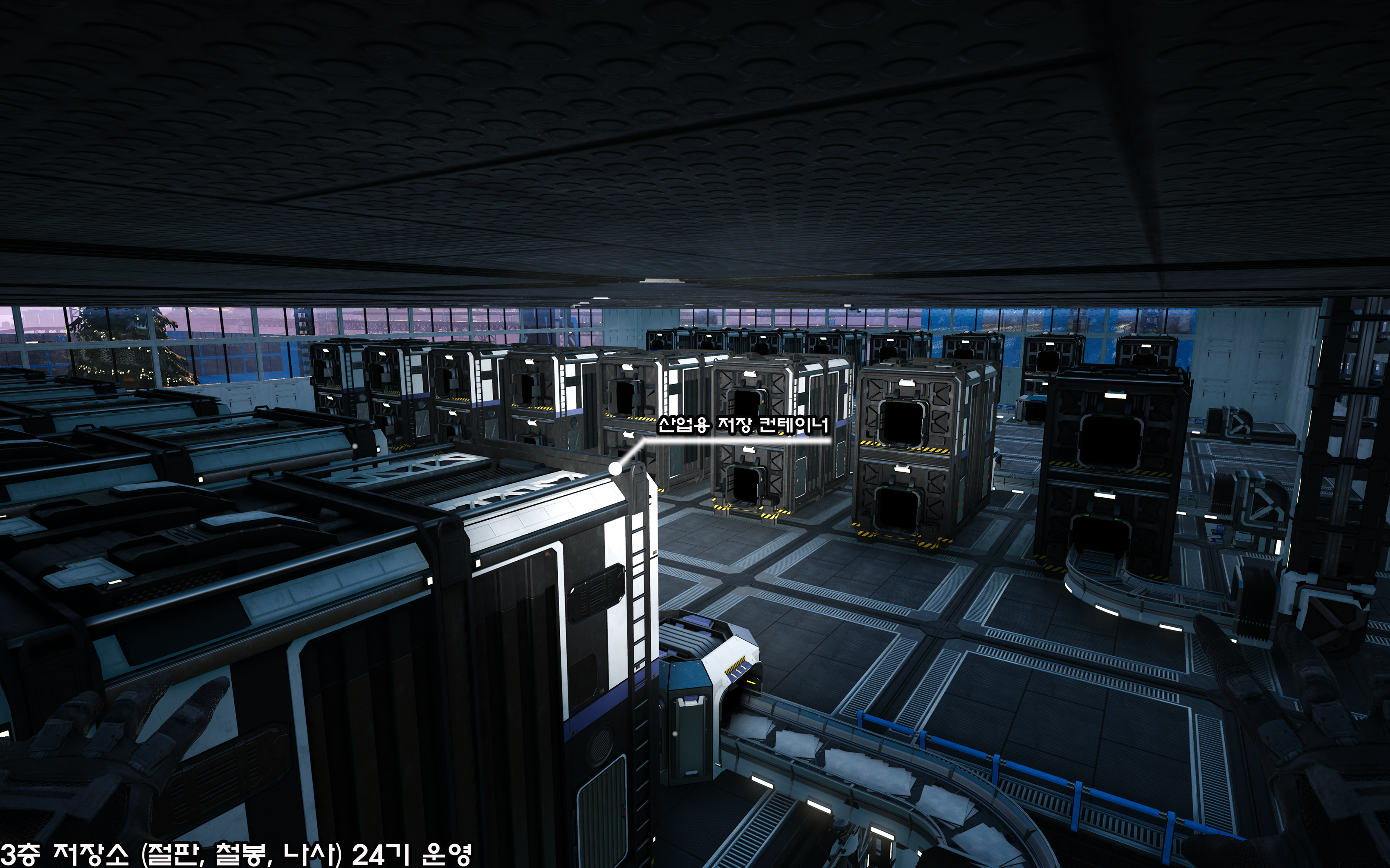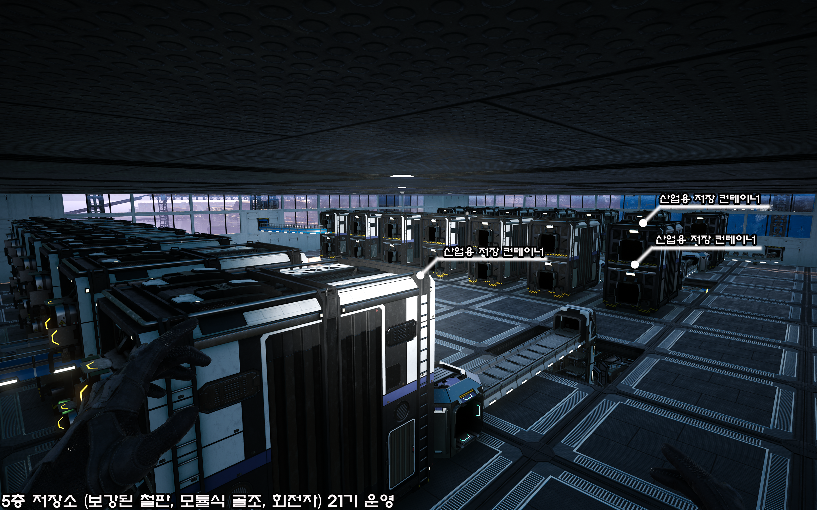 3층의 저장소보다 저장 컨테이너 수가 조금 줄긴 하였으나, 생산량을 충분히 커버하고 있습니다.