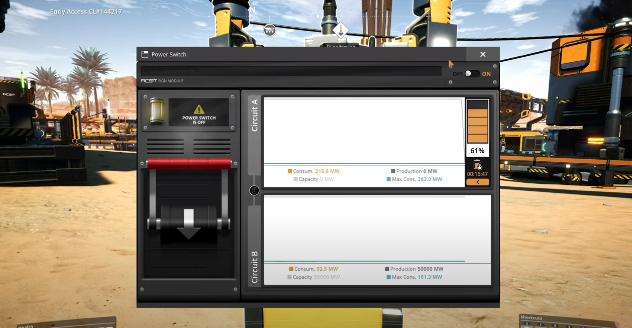 이름은 Power Switch입니다. 대형 배터리 또는 메인 전기와 연결하여, 각 공장의 섹션을 만들 수 있습니다,
