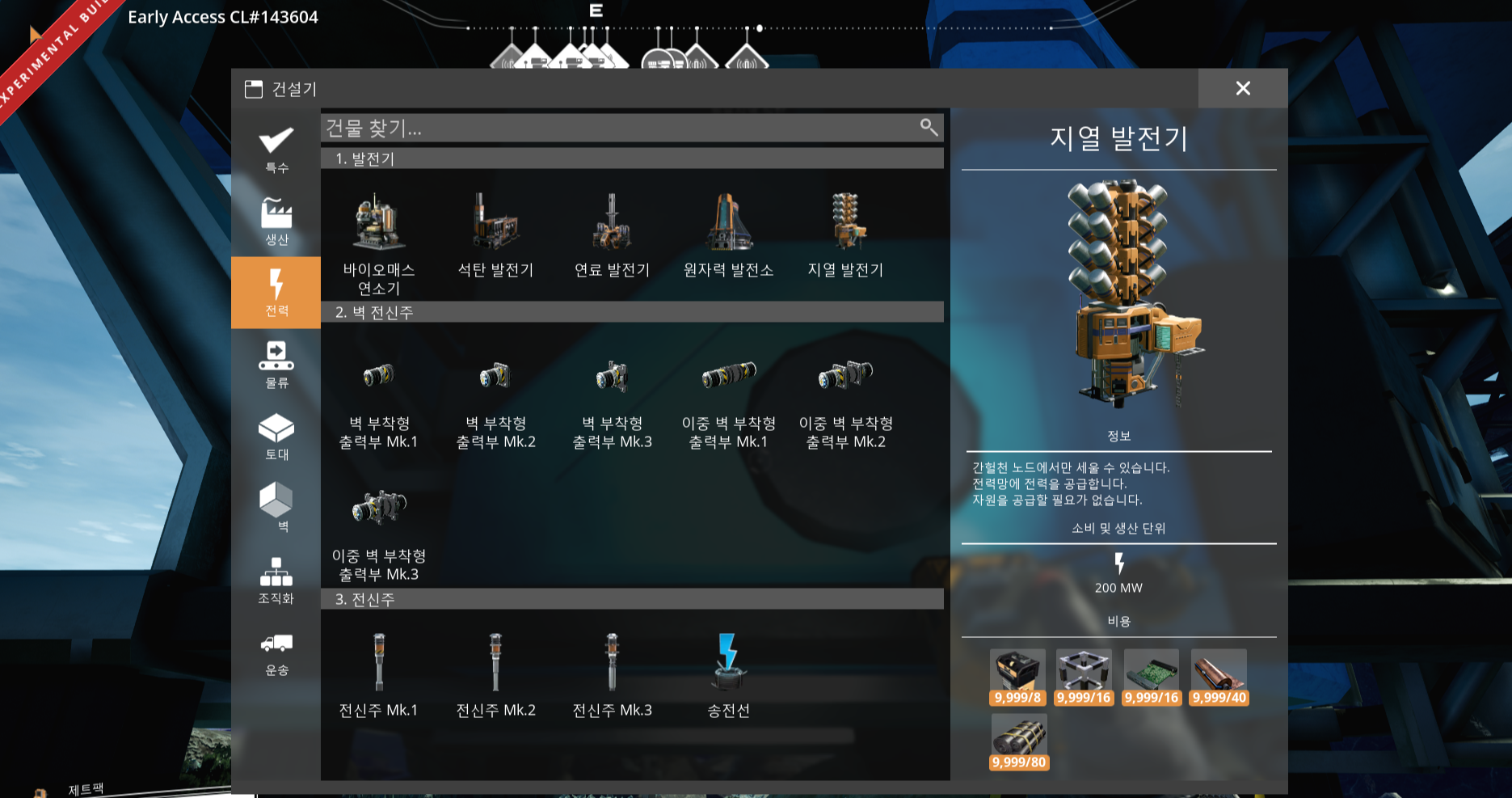 현재 지열 발전기는 M.A.M 연구소의 카테리움 연구를 통해 얻을 수 있으며, 설치하여 전기 생산은 가능하지만 UI는 제공하지 않고 있습니다.