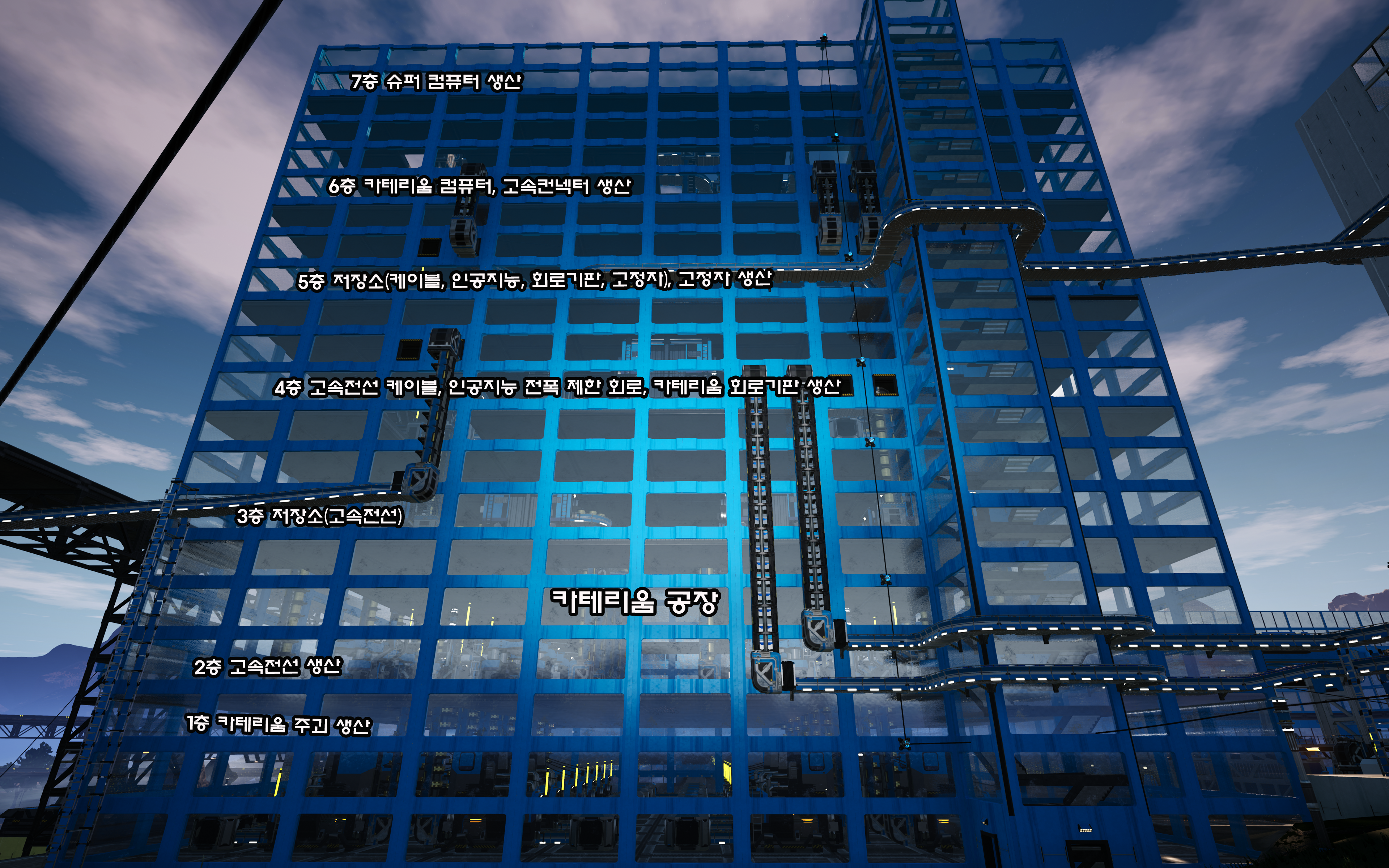 1층에서 생산하는 카테리움 주괴를 이용한 고속 전선 생산실입니다.