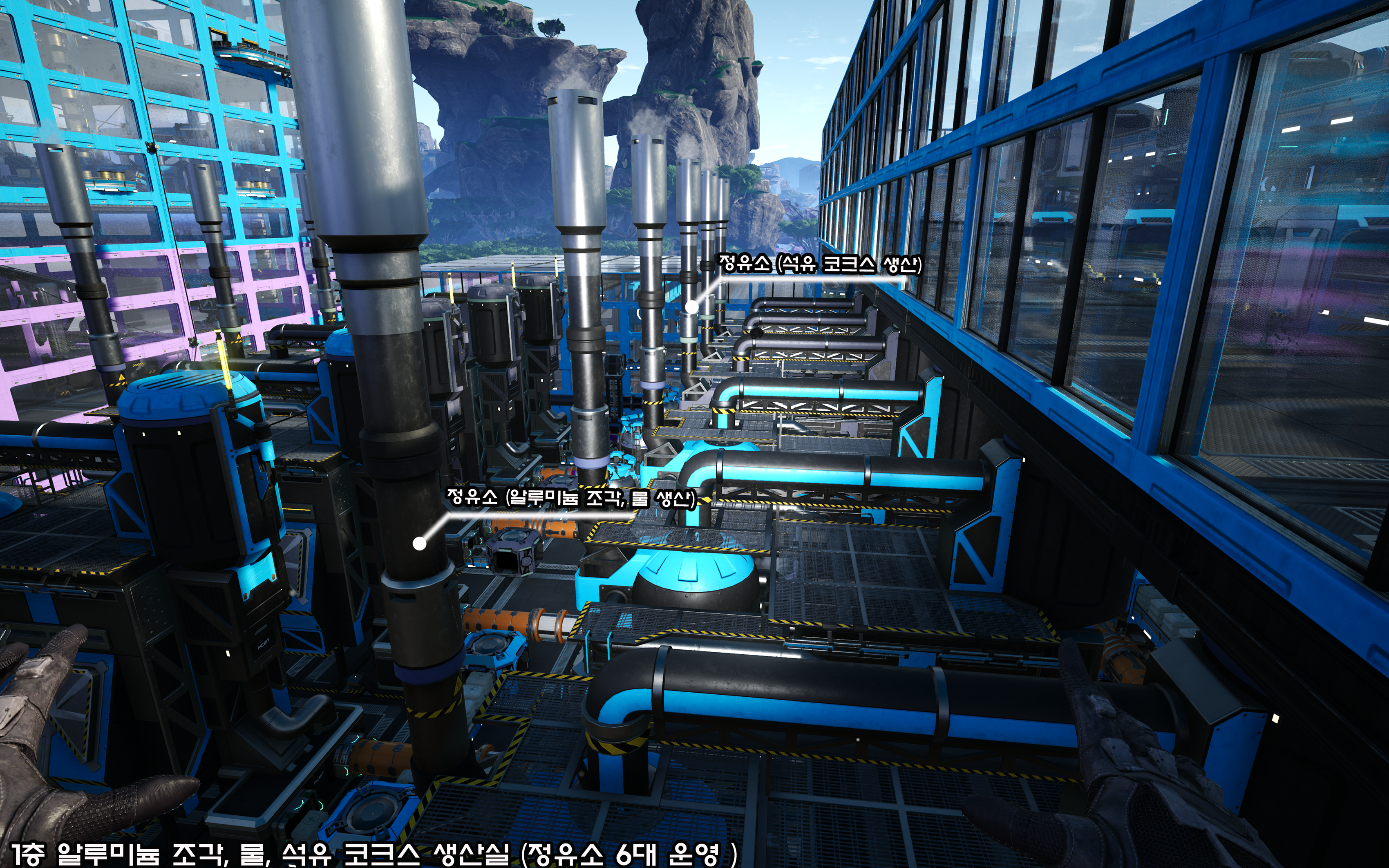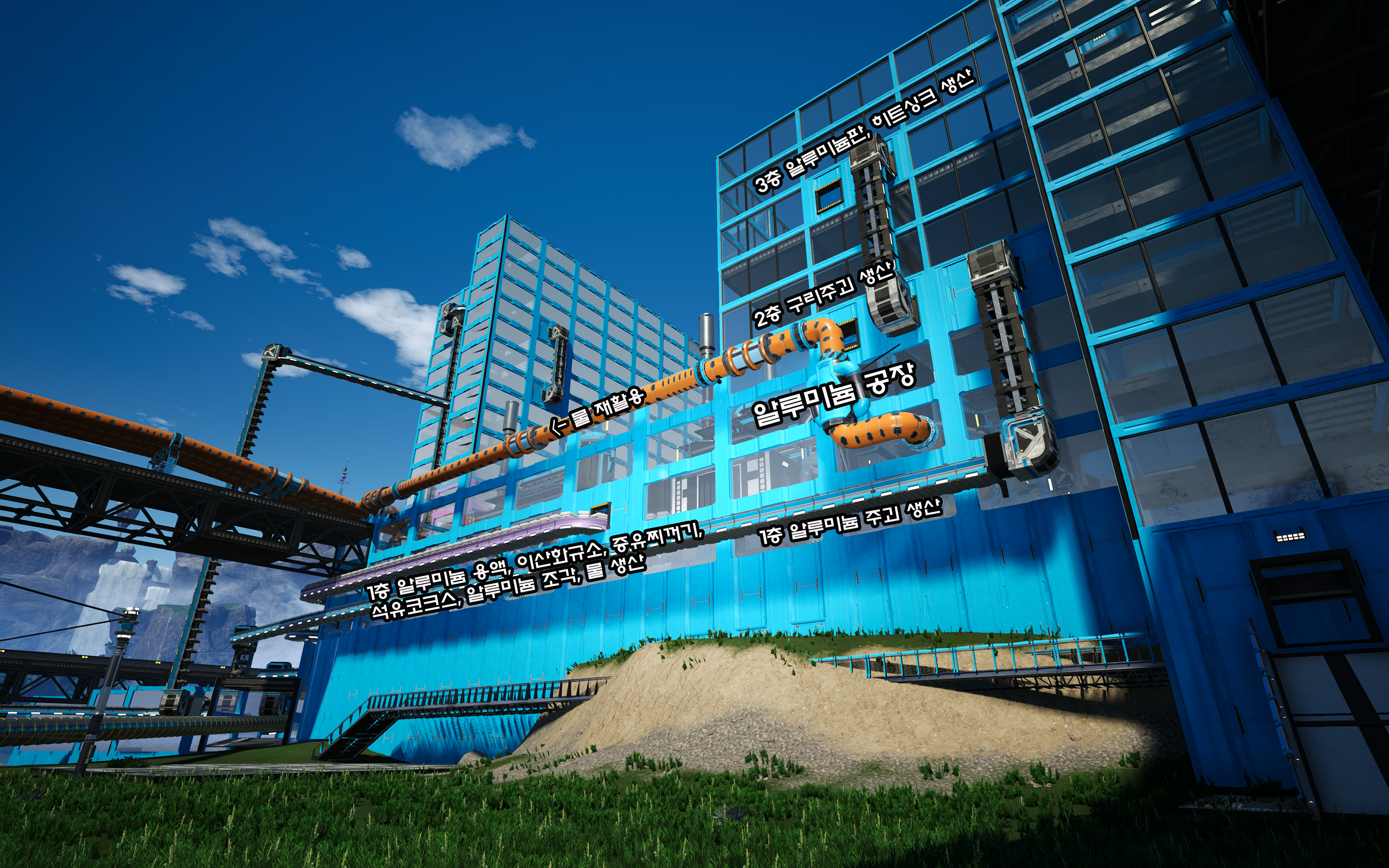 알루미늄 공장은 총 3층으로 되어 있으며, 정유소는 전부 1층에 배치되어 있습니다.
