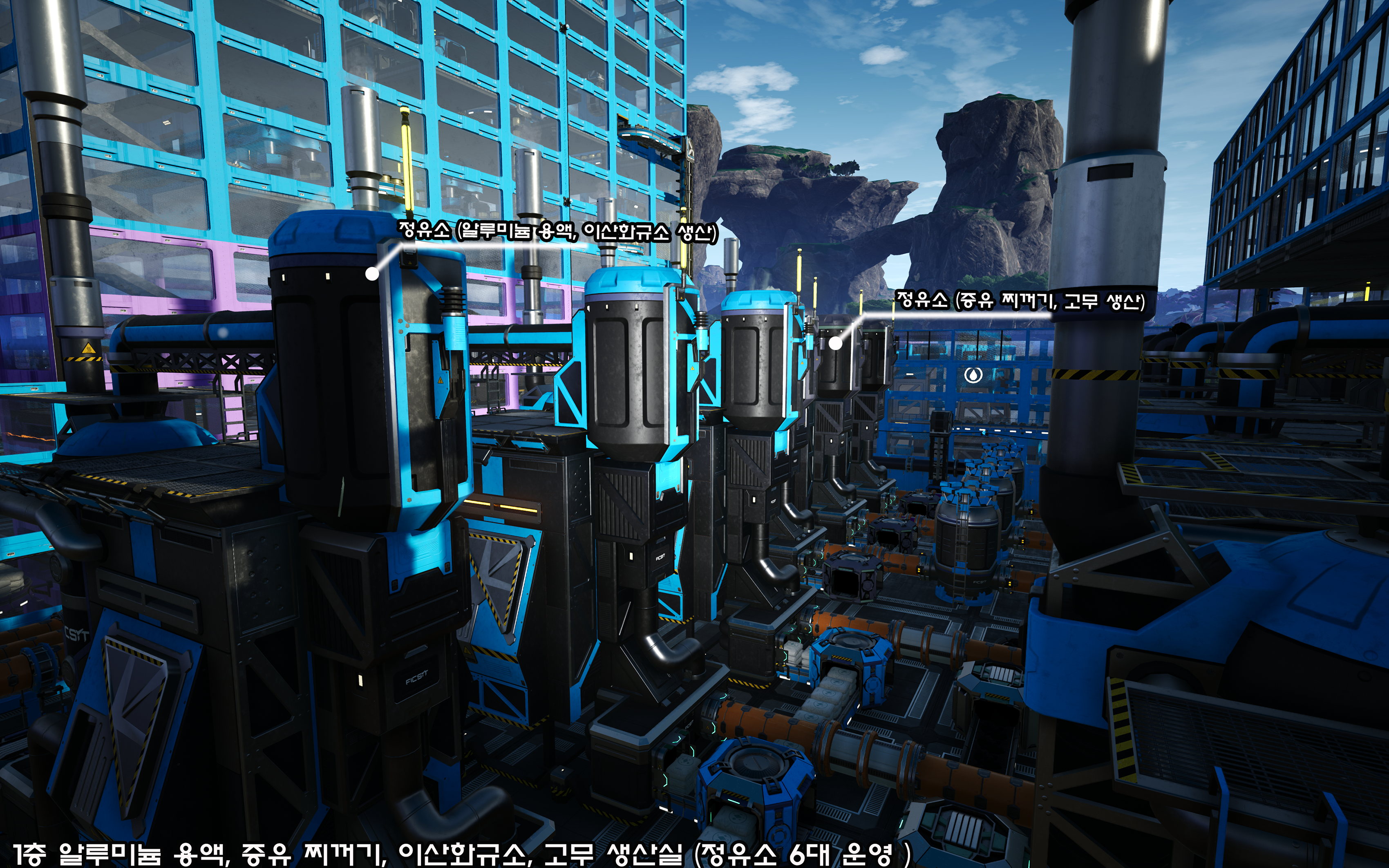 알루미늄 공장은 총 3층으로 되어 있으며, 정유소는 전부 1층에 배치되어 있습니다.