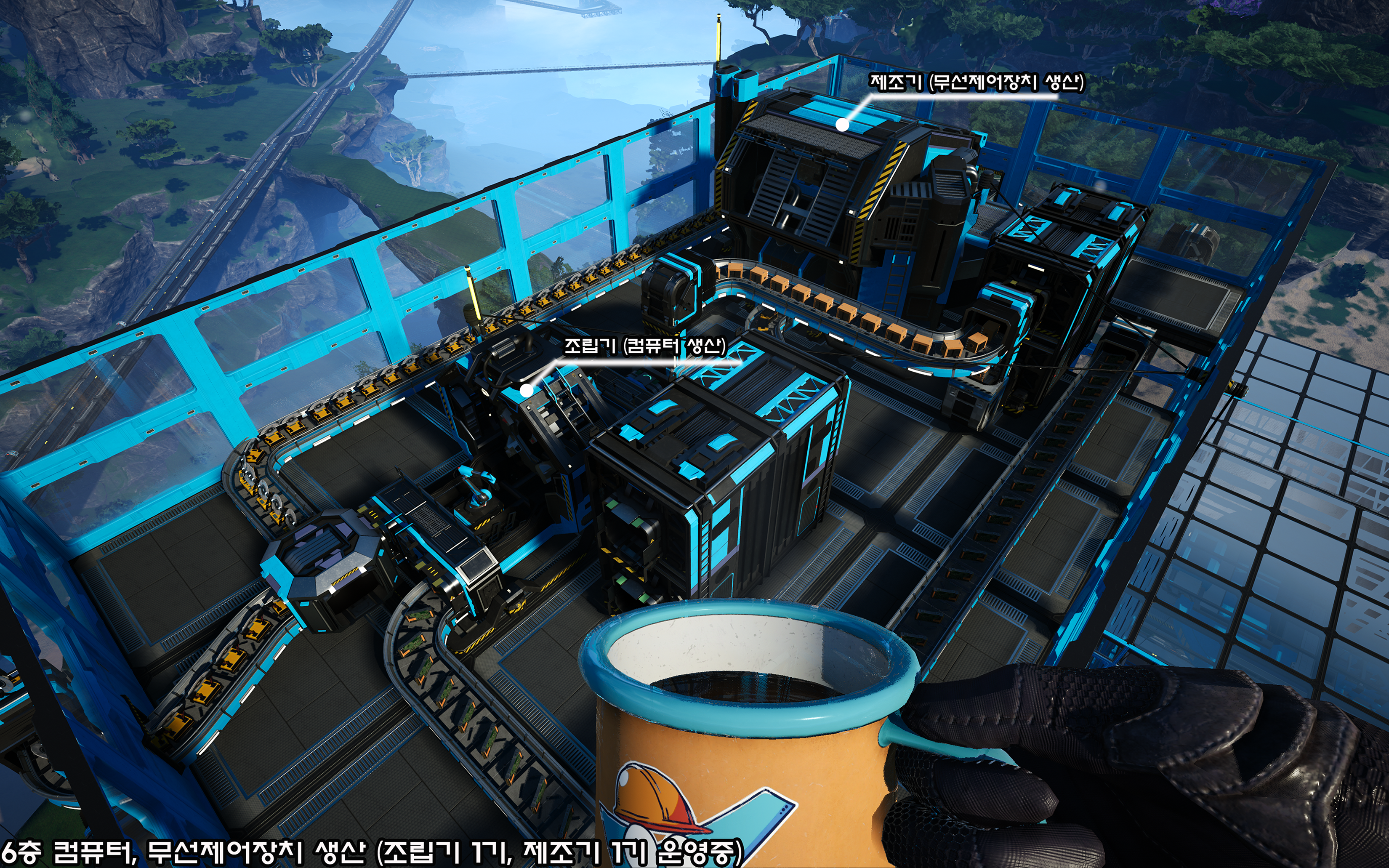 2층에서 생산 중인 수정 발진기와 5층에서 생산 중인 회로기판을 사용해 컴퓨터를 생산하고 있으며,
