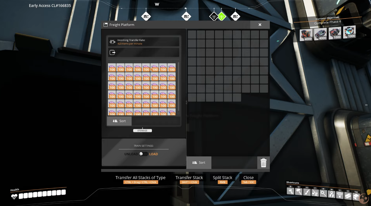 설정 화면에서 화물을 얼마나 싣을 것인지 또는 얼마나 대기할 것인지를 선택할 수 있습니다.