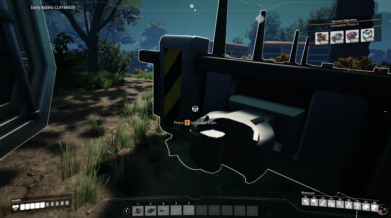 - 충돌이 발생한 열차는 가까이 가면 위의 캡쳐 화면과 같이 Press E to re-rail train라는 명령어가 표시됩니다.