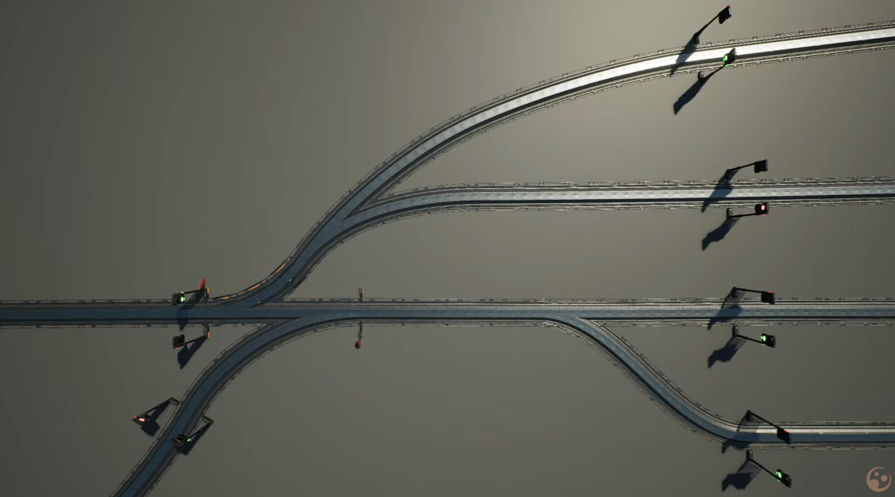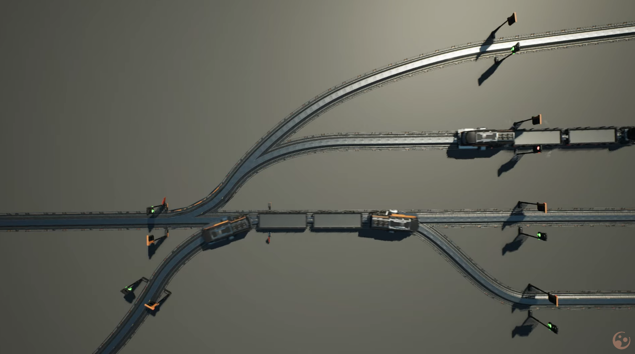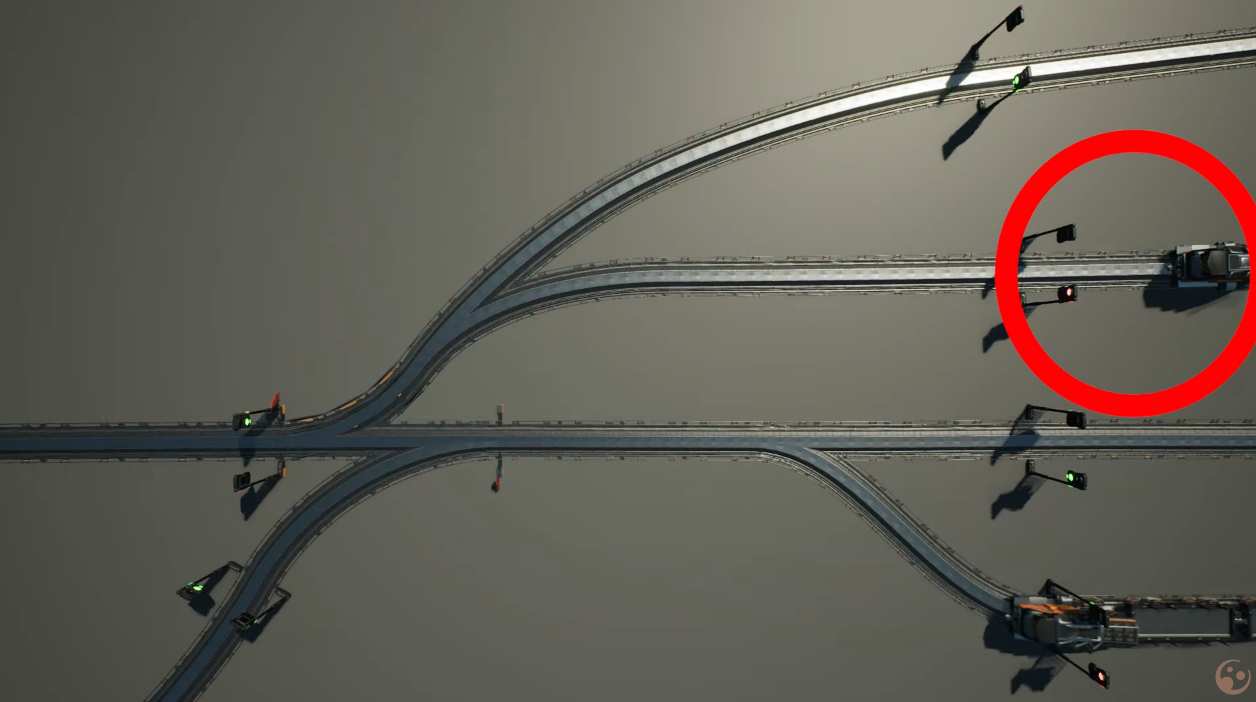 쉽게 설명하자면 위와 같이 게임 내에서 하나의 선로에 신호등이 설치되어 있으며, 앞에 열차가 모든 하역을 끝내고 앞에 있는 신호등을 통과할 때까지 뒤에 기차는 대기를 하게 됩니다.