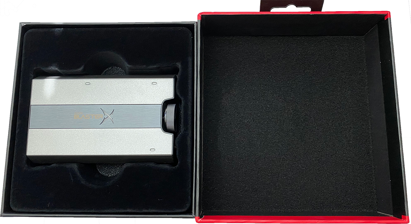 포장된 박스를 열면 위와 같이 윗칸에는 사운드 블라스터 G6가 바로 볼 수 있습니다.