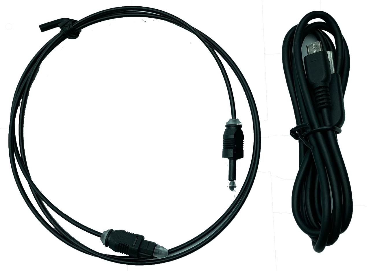기본 구성품으로 들어 있는 광케이블과 USB 전원 케이블입니다.