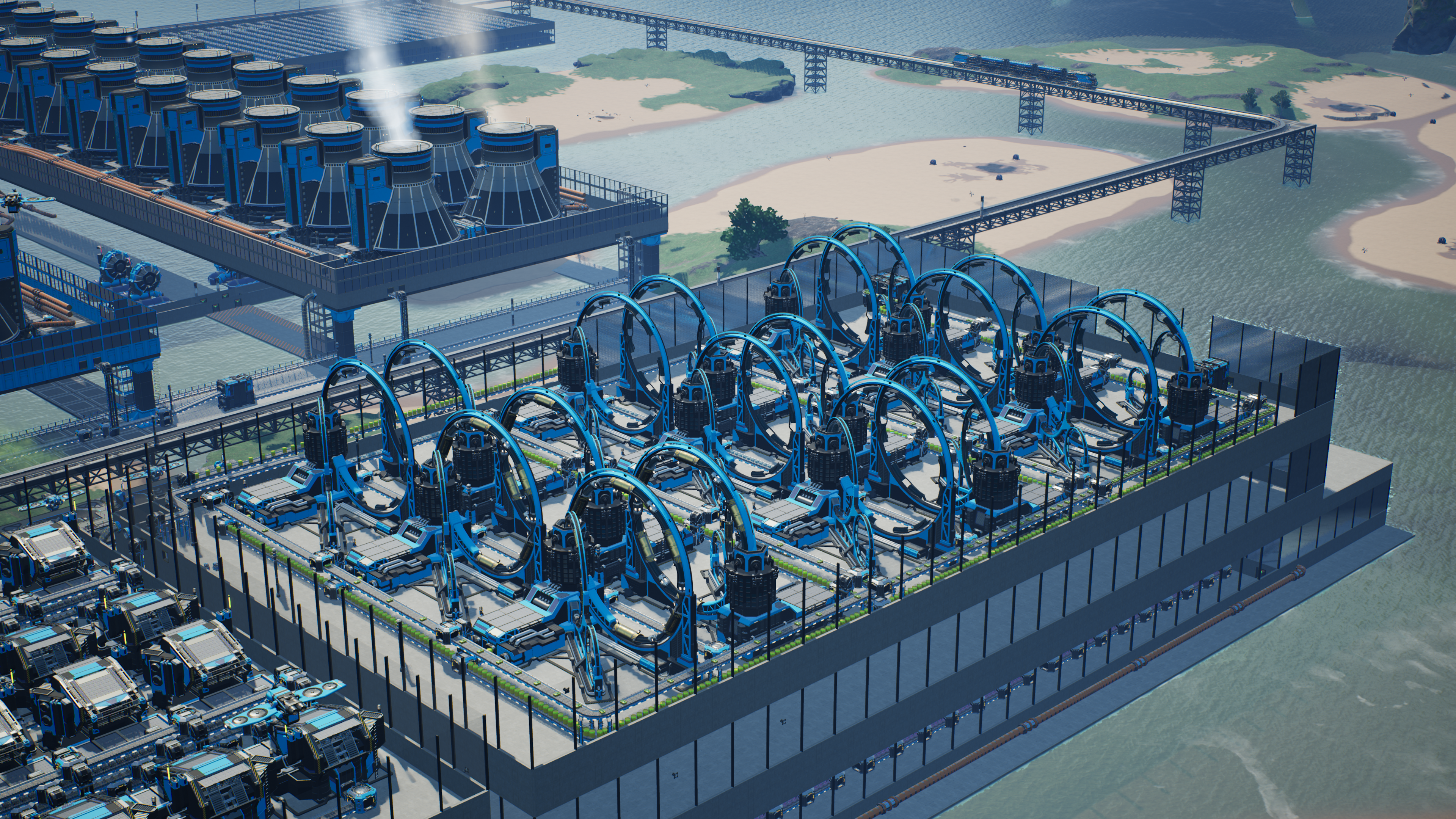 기존에는 베이스에서 열차로 운송하여 부품을 조달하였으나, 소모량이 많아지면서 생산에 필요한 자원이 부족하여 추가 생산을 위한 공장을 원자력 발전소 옆에 지어놨습니다. 지금은 양쪽에서 부품 조달을 받고 있습니다.