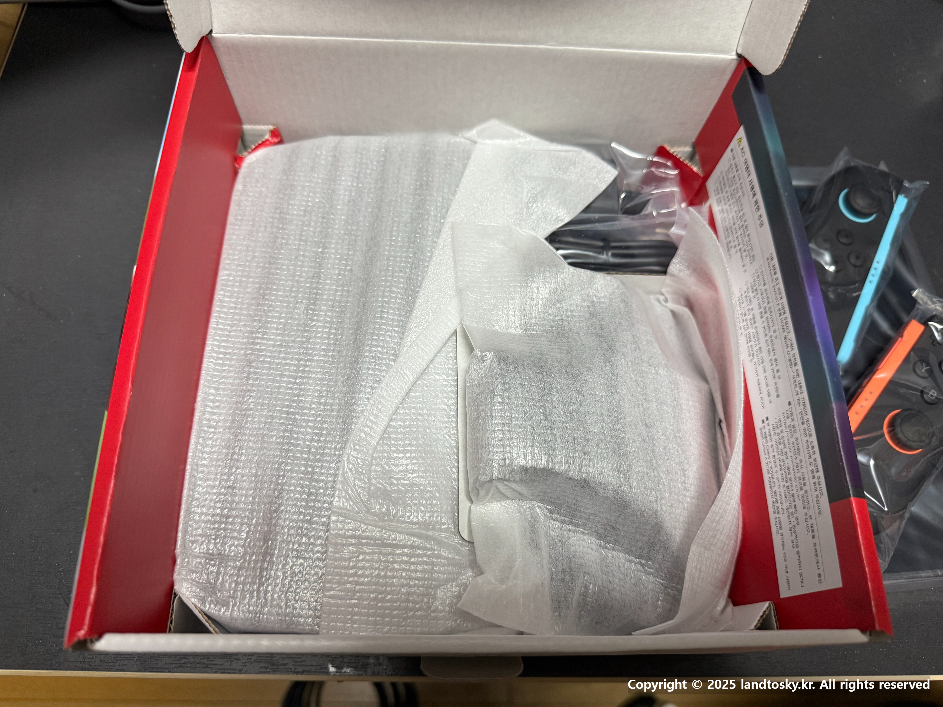 박스를 열면 맨 위에 스위치 본체와 조이콘이 있습니다.