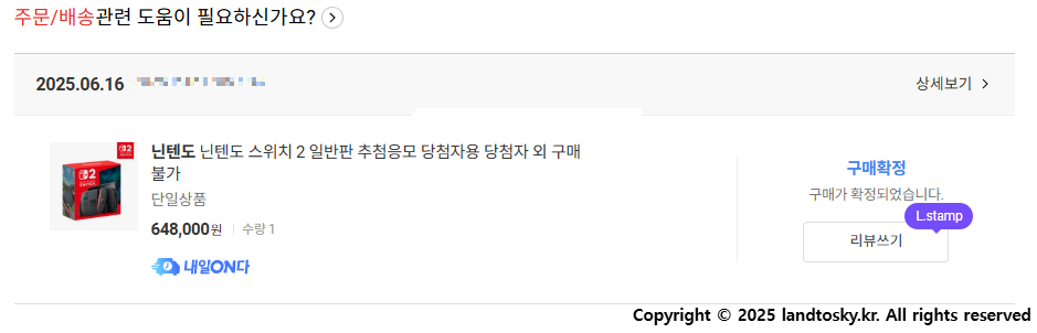 롯데 ON에서 마지막 응모 기회가 있다고 하여 막차를 탔습니다.